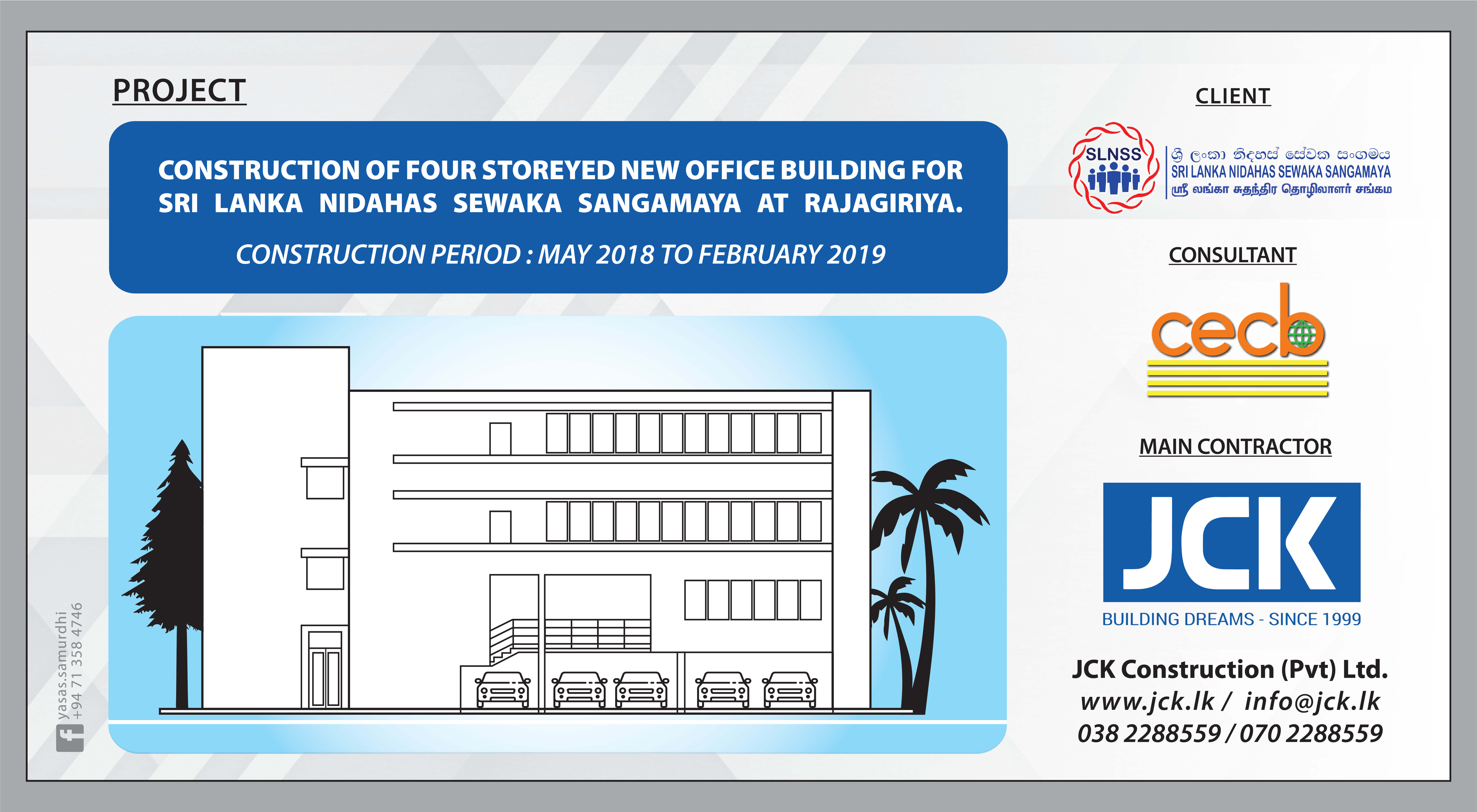 Project DetailsClientConsultantConstruction DurationConstruction ValueProject ScopeWork IncludeDescriptionClient Sri Lanka Nidahas Sevaka Sangamaya (SLNSS) Consultant central engineering consultancy bureau Construction Duration 05/2018